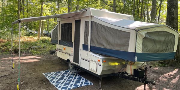 Campsite not included. Trailer delivered and set up on the campsite your reserve. Trailer does not have an awning. Trailer does not come with bedding, pots, pans, or eating supplies. Please reach out with questions or availability.